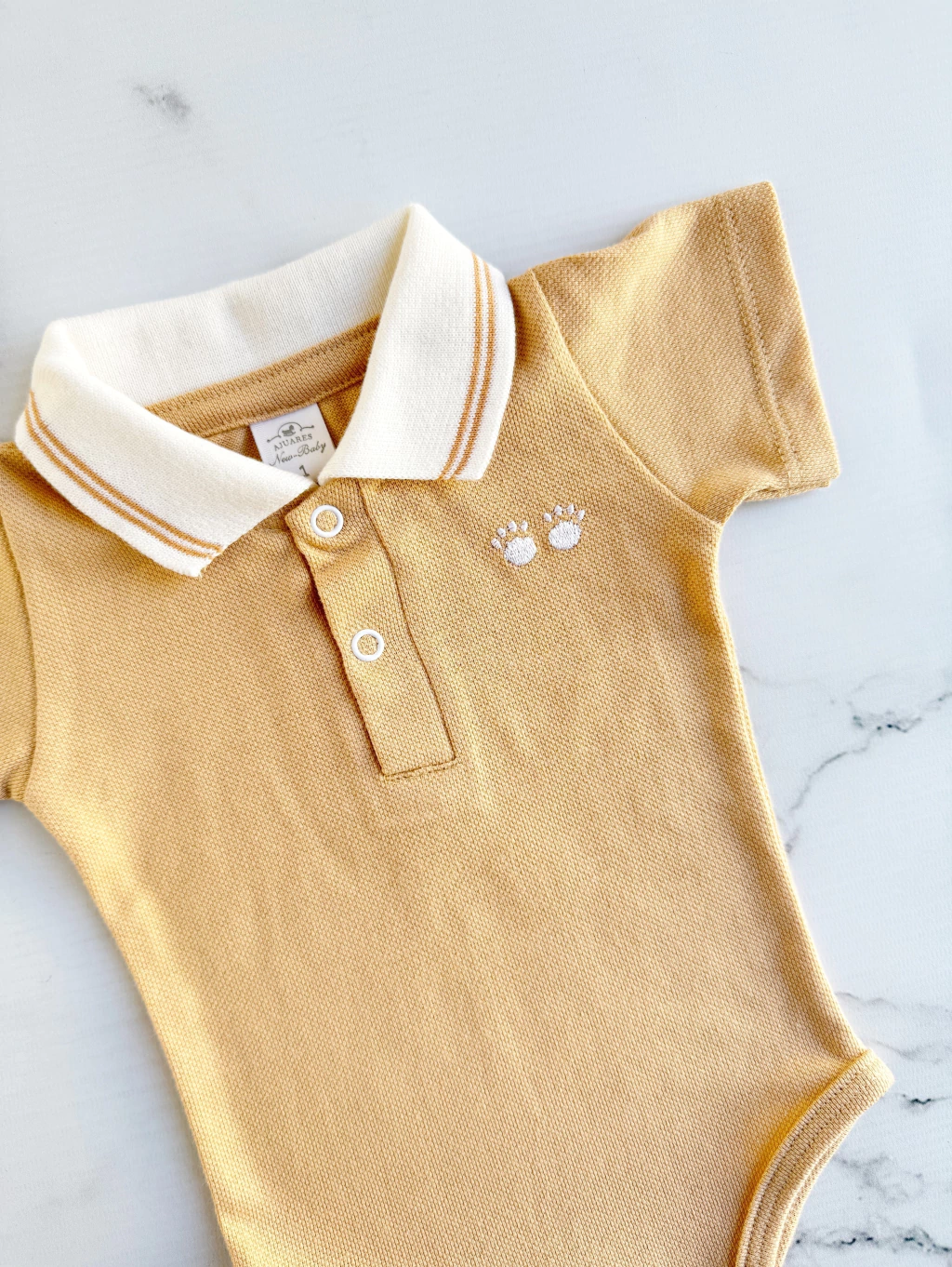 Diseño: De estilo chomba, con cuello tejido que aporta un detalle clásico y elegante. Incluye un delicado bordado en el frente y broches metálicos que permiten cambiar al bebé de manera práctica y rápida.