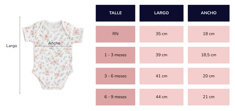 Diseño: De manga corta y con cuello americano, pensado para facilitar la colocación sin incomodar. Incluye broches en la parte inferior que hacen que cambiar el pañal sea rápido y práctico. Su corte clásico lo convierte en una prenda versátil y funcional.