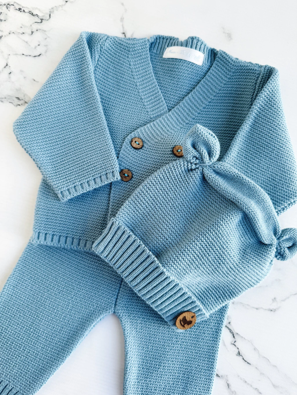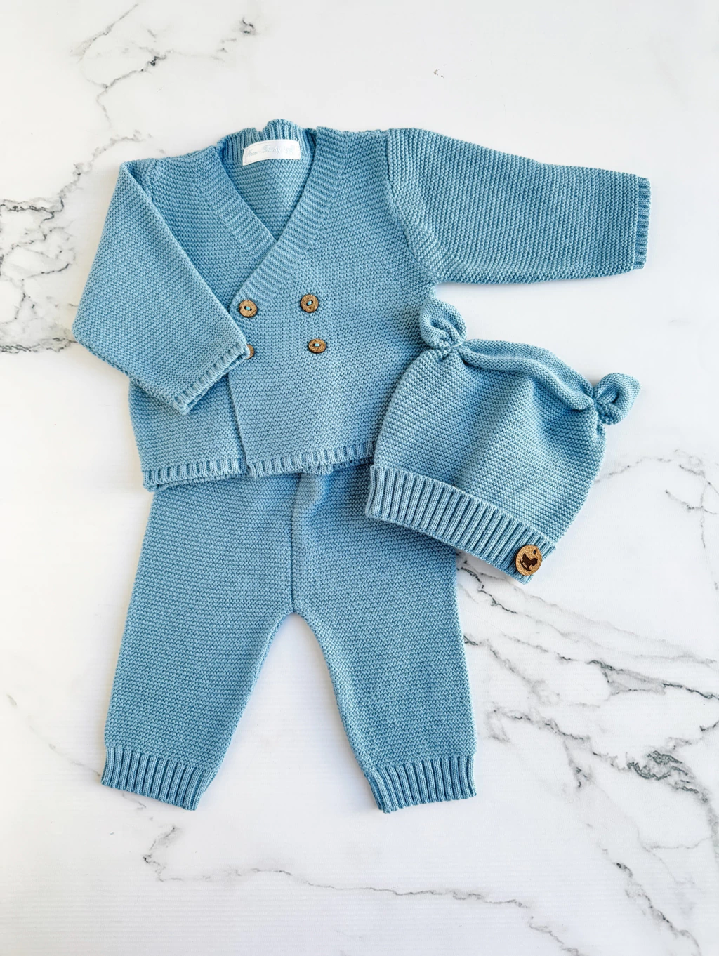 Conjunto tejido confeccionado en hilado hipoalergenico para bebe