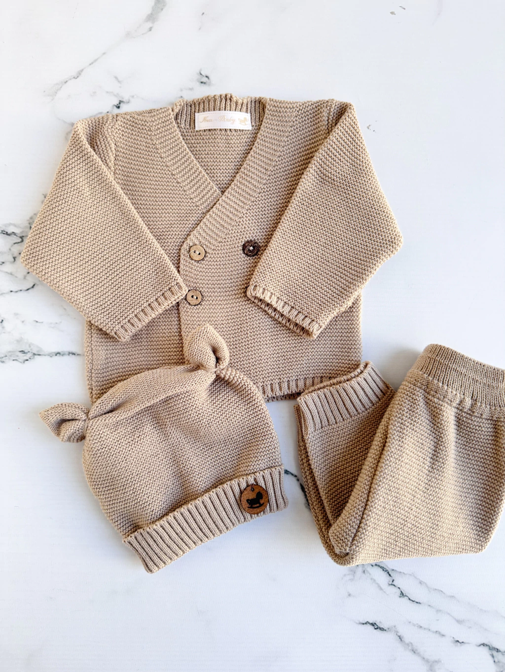 Conjunto tejido confeccionado en hilado hipoalergenico para bebe