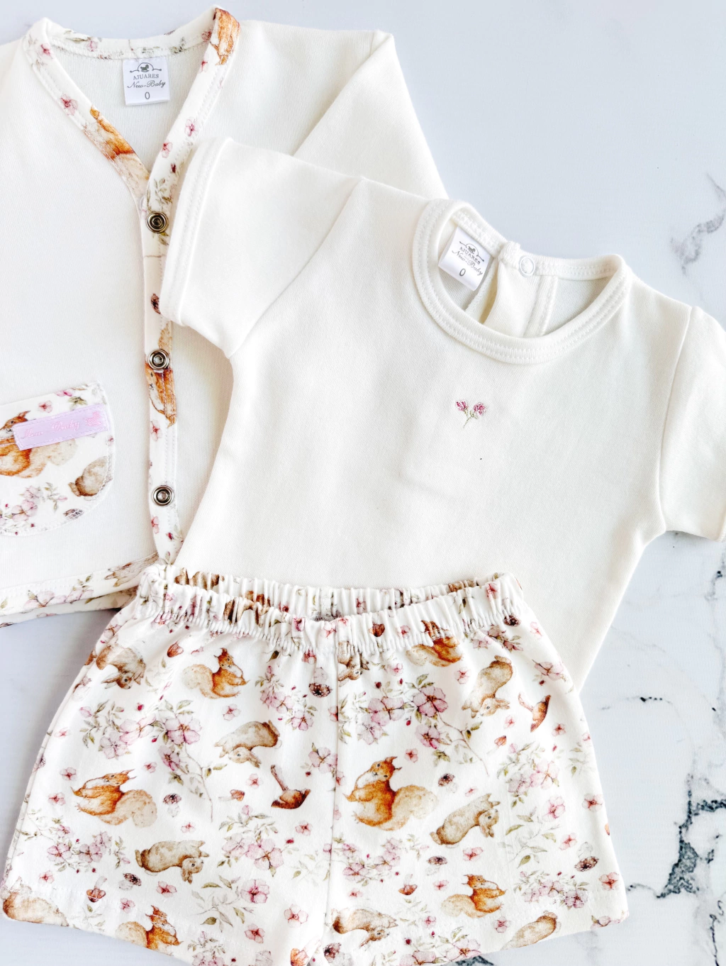 El Conjunto es presentado envuelto en papel de seda con moño y tarjeta al tono. La presentación del regalo de nacimiento es hermosa!!