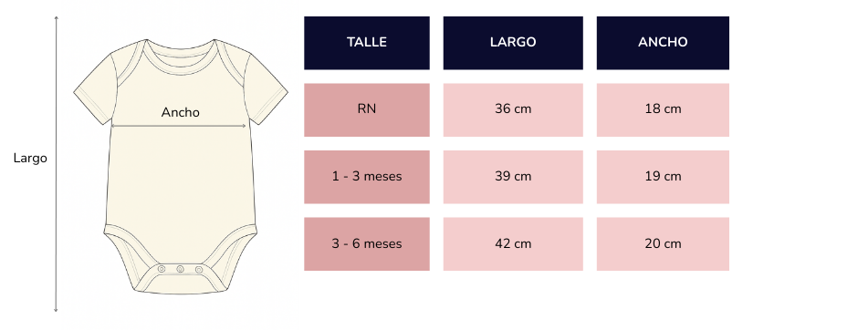 Diseño: Body hombro americano, práctico para vestir y desvestir sin incomodidades. Broches a presión en la parte inferior para facilitar el cambio. Short y saco sueltitos, cómodos para acompañar los movimientos de tu bebé.