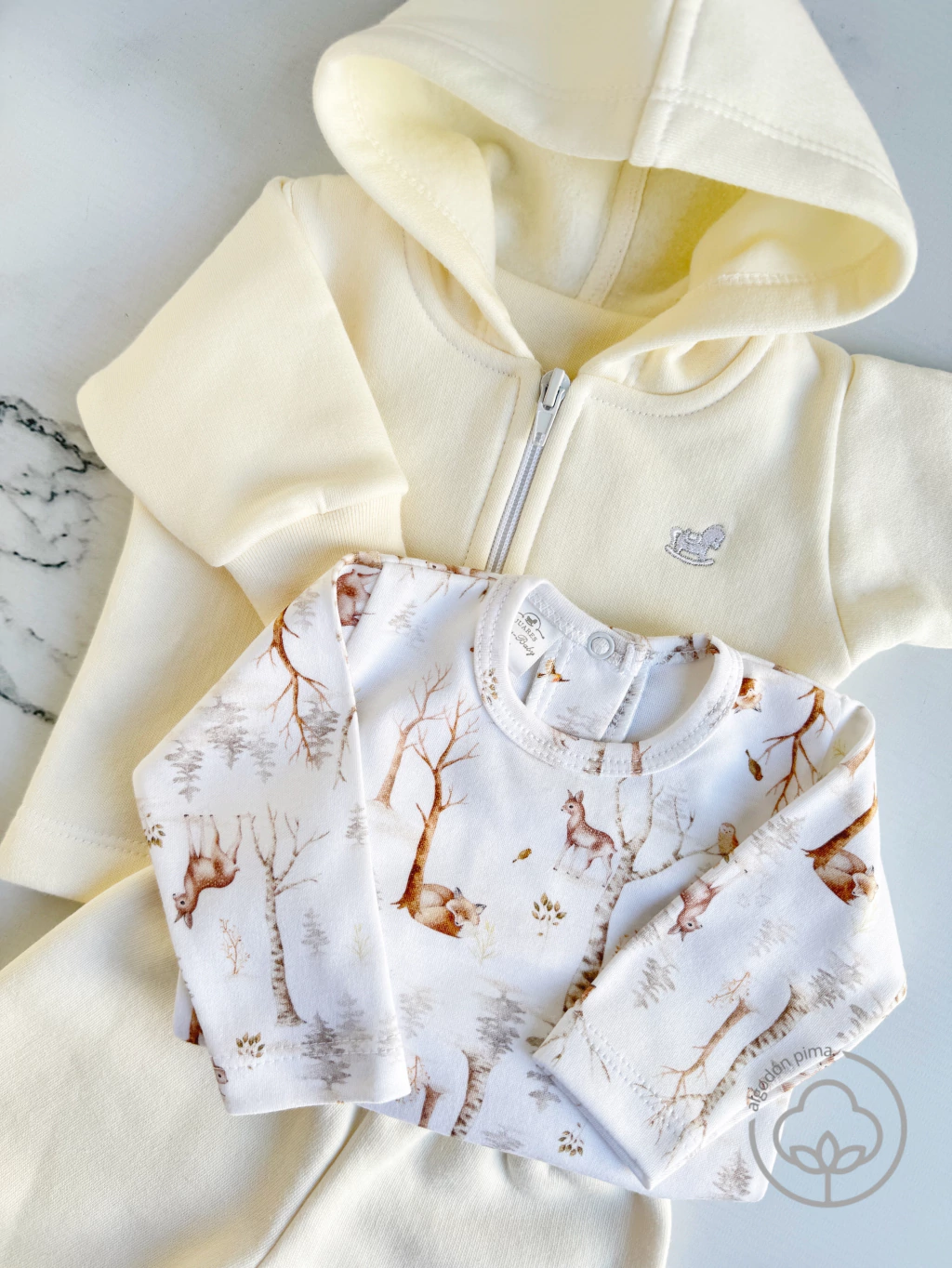 El Conjunto Jogging es presentado en la Caja Kraft, envuelto en papel de seda y tarjeta al tono. La presentación del regalo de nacimiento es hermosa!!