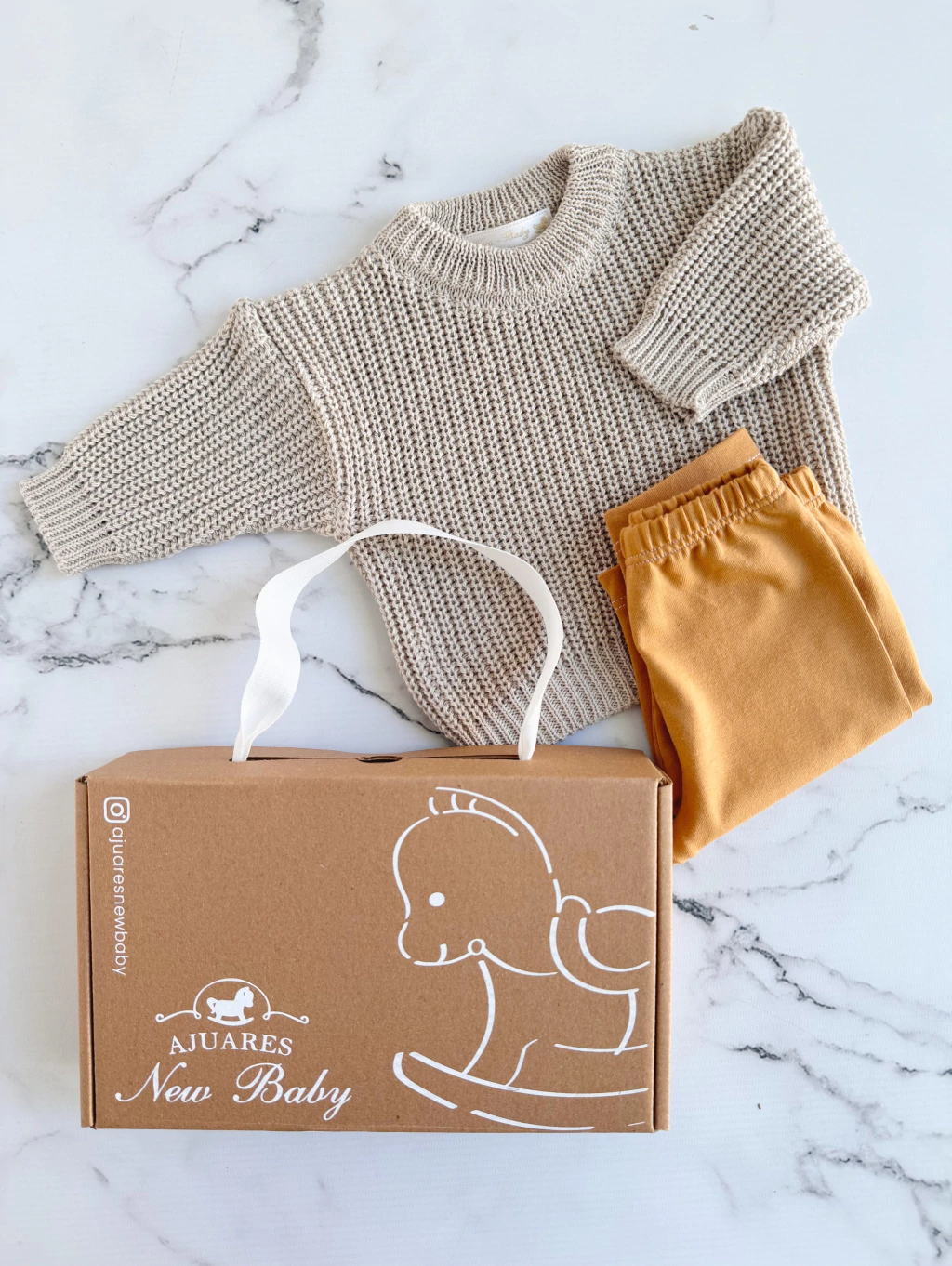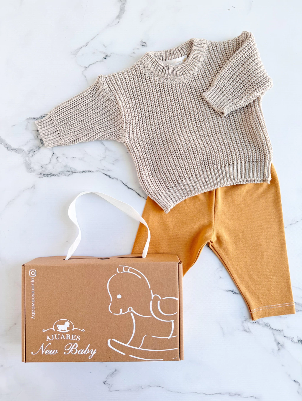 El Conjunto es presentado envuelto en papel de seda dentro de la caja Kraft. La presentación del regalo de nacimiento es hermosa!!