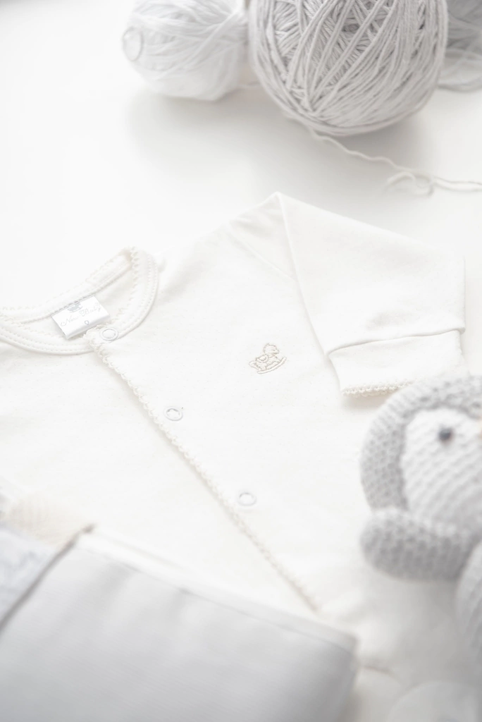 El Enterito Desagujado con Picot es presentado envuelto en papel de seda con moño y tarjeta al tono. La presentación del regalo de nacimiento es hermosa!!