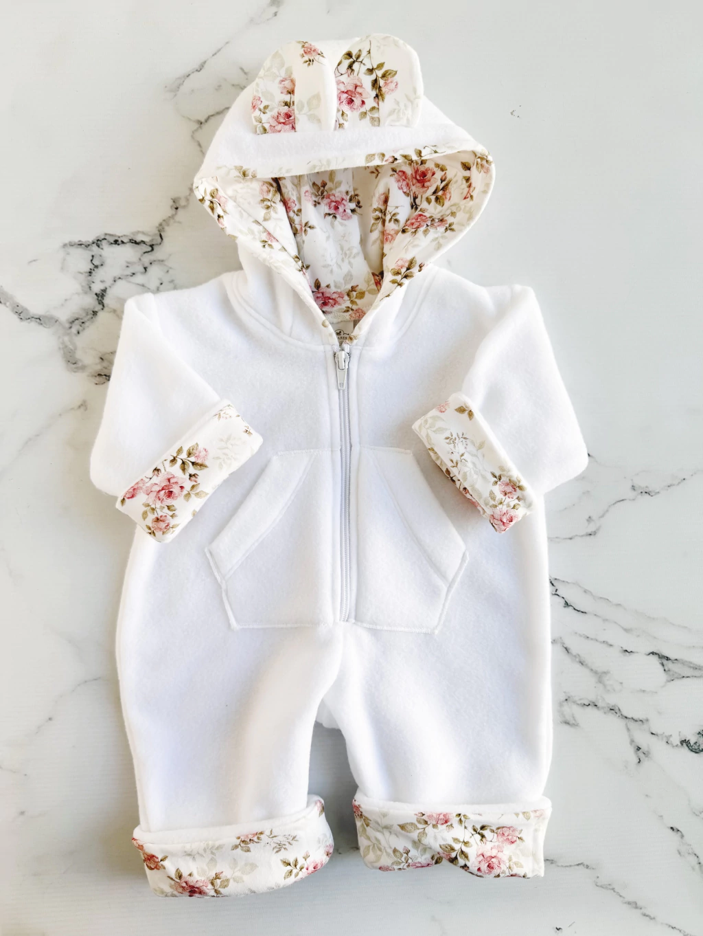Tiene capucha forrada en puro algodón estampado con orejitas.