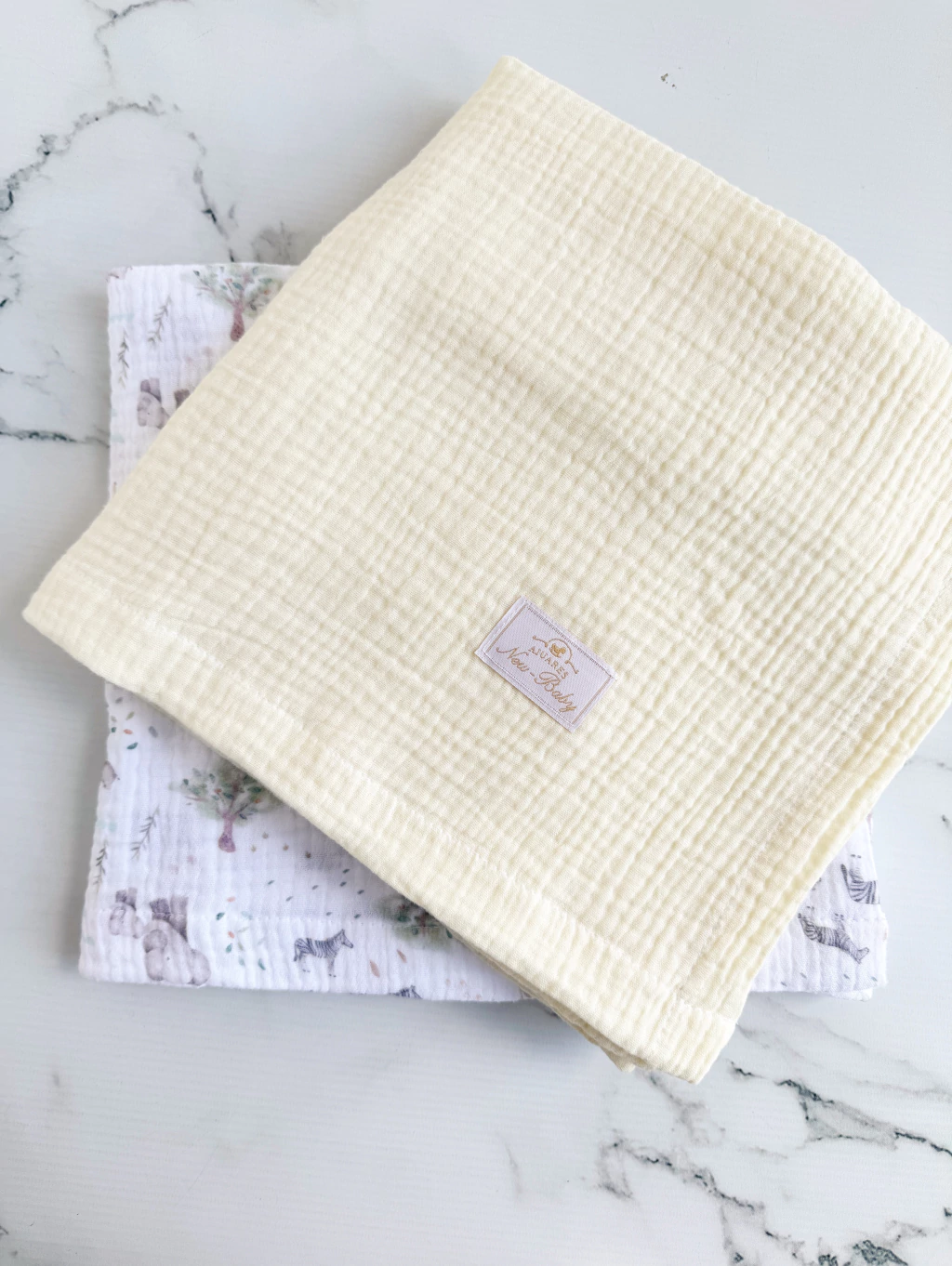 Descubrí nuestras mantas de gasa, confeccionadas en 100% algodón para ofrecerte una textura liviana y súper fresca. Ideales para múltiples usos, estas mantas acompañan cada momento: desde tapar a tu bebé, cubrirte durante la lactancia, proteger el cochecito en las salidas, hasta usarse como sábana en la cuna.