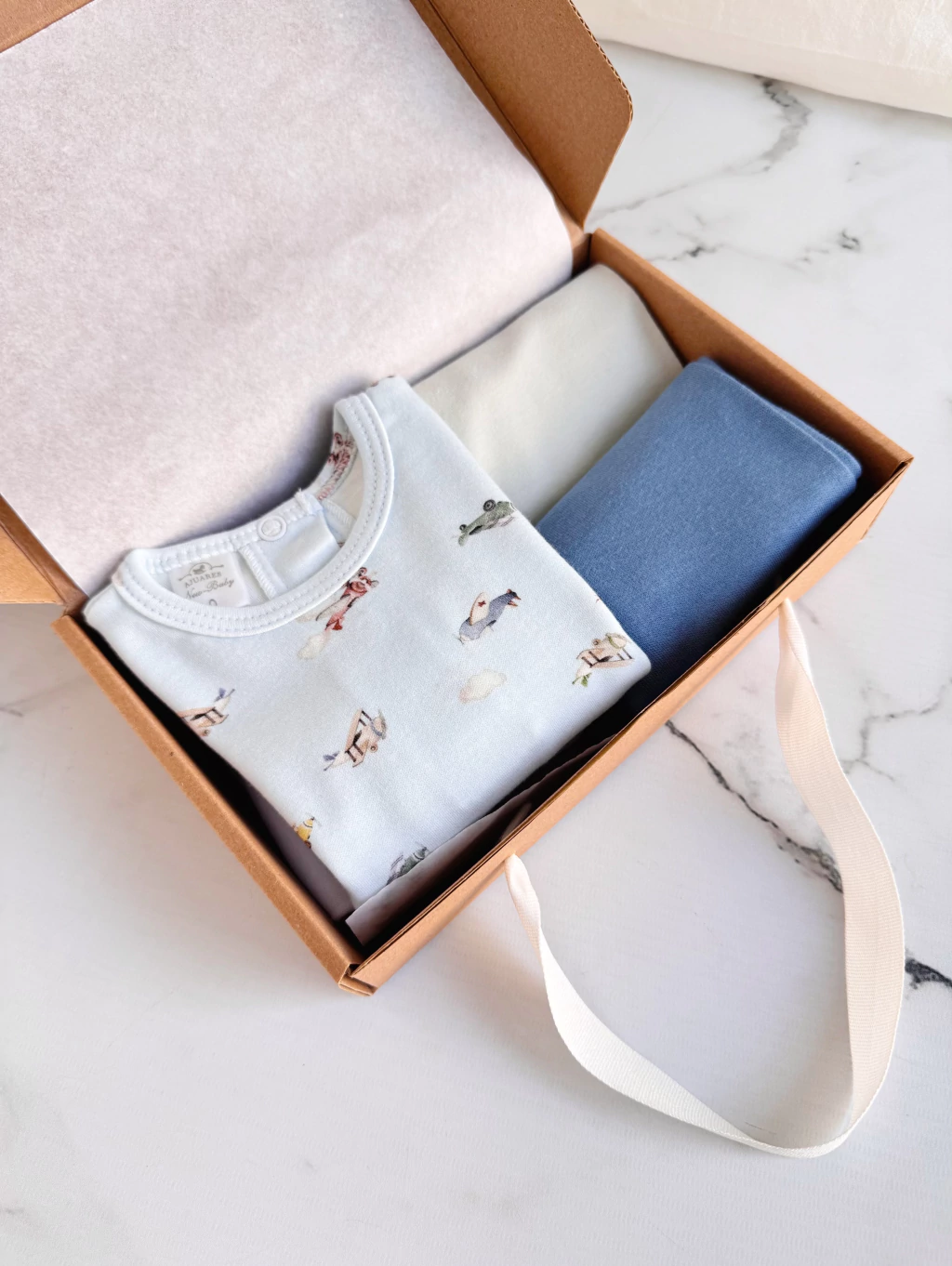 El Pack es presentado en Caja Kraft, envuelto en papel de seda con moño y tarjeta al tono. La presentación del regalo de nacimiento es hermosa!!