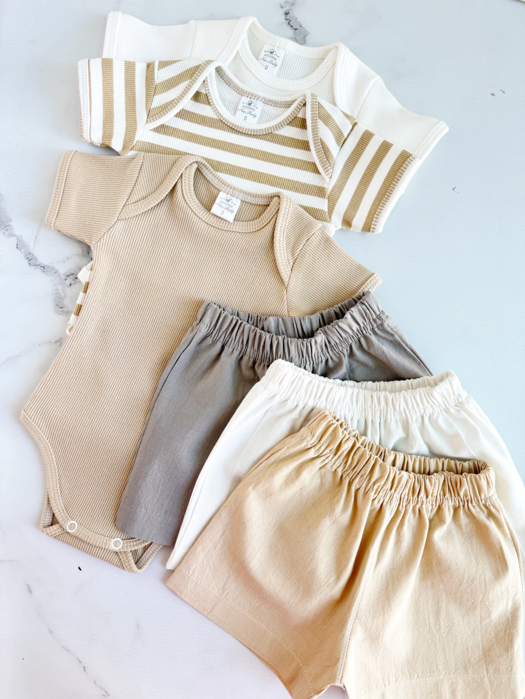 Un pack práctico que armás vos para que tu bebé tenga dos looks completos (body + pantalón) sin complicaciones. Combinalo con los Saquitos Tejidos
