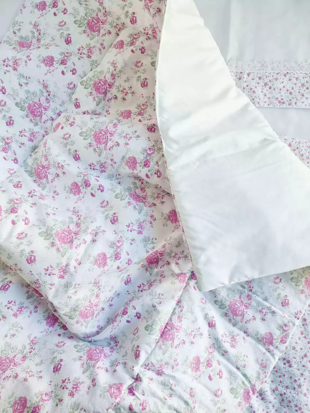 Podes combiar las sábanas de catre con nuestros acolchados y chichoneras para que la deco de la habitación de tu bebe quede soñada.